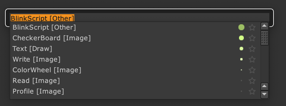 Press the Tab key in the node graph and search for BlinkScript.¶