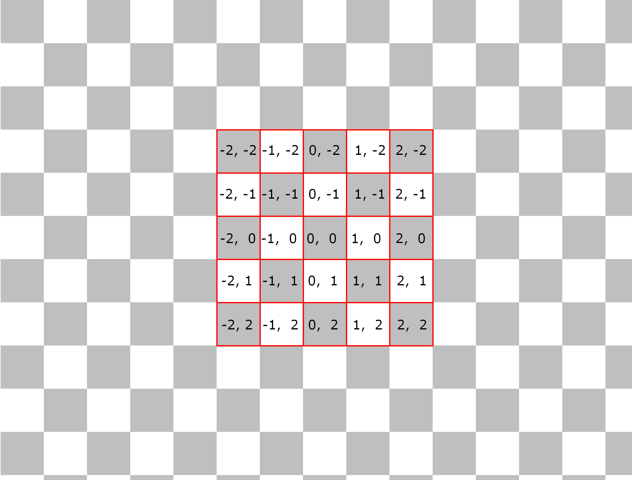 An example of 2D Ranged Access using setRange(-2, 2).¶