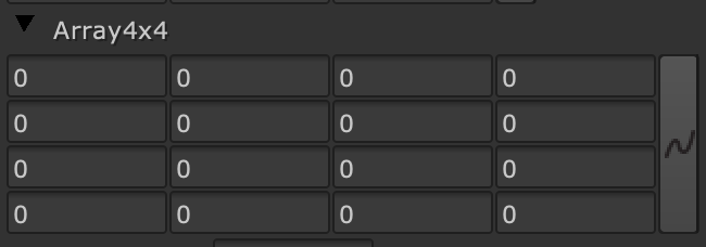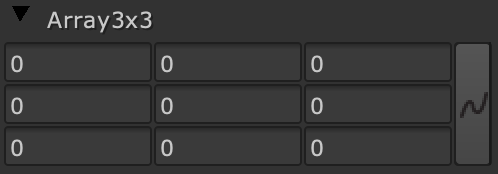Parameters with nine floating-point values, including float3x3, will be displayed as an Array_knob with a 3x3 grid. Parameters with sixteen floating-point values, including float4x4, will be displayed as an Array_knob with a 4x4 grid.