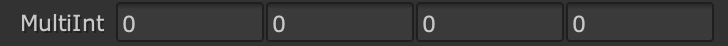 Parameters of type int2, int3, int4 or int[] will generate a MultiInt_knob, with multiple numeric input boxes. As with the Int_knob, right-clicking in the input boxes produces a menu which allows you to animate the values.