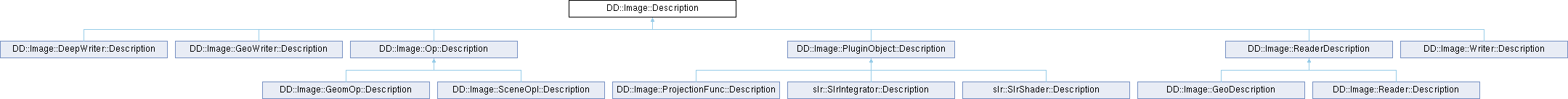 Describes an object provided by a plugin. Each different class of object has it's own subclass of Description. The base class mostly provides licensing check information. Writers of plugins can take advantage of this to prevent their plugin from working on unauthorized systems.