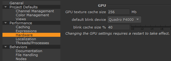 您可以控制GPU内存的大小以及可用于缓存的内存的百分比Nuke的Preferences下Performance > Hardware。您也可以在Preferences。
