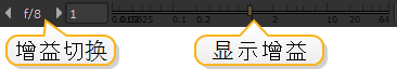 使用增益和伽玛切换按钮,可以在默认值1(无变化)和在查看器中最后一次进行的增益和伽玛调整之间切换。