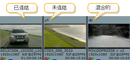 版本链接允许在源片段和镜头之间链接和取消链接源片段版本。您可以定义拍摄版本是否链接到其源剪辑版本,并且存在三种剪辑状态: