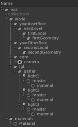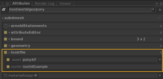 您可以指定一个名为rootId对于任何场景图位置,以及-如果该位置用作LookFileBake中的根位置,请使用rootIds来帮助确定最终的Look File解析到哪个场景图位置。rootId是字符串类型的属性,在lookfile.rootId在场景图位置的“属性”中。