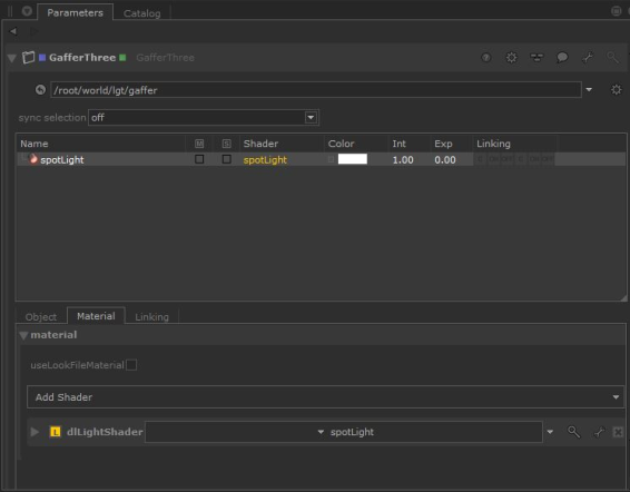 这将创建3Delight聚光灯并将其放置在gaffer对象表中。