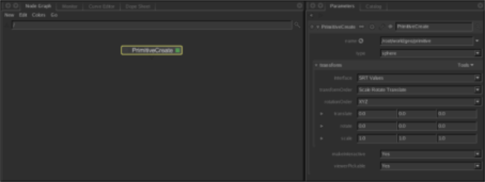 最食谱首先读取构成场景的3D元素(例如相机数据,几何缓存或粒子缓存)。在此示例中,我们使用默认为球体的PrimitiveCreate节点。