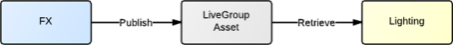 在此示例中,FX艺术家仅对发布其设置感兴趣,而照明艺术家仅对导入已发布的项目感兴趣,如下图所示: