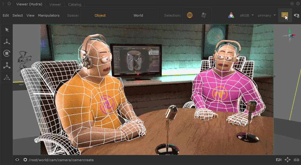 监控层是的新功能Katana 3.5,您可以直接在Hydra Viewer中切换渲染视图,覆盖几何体。当使用实时渲染时,此功能特别有用,因为当您更改场景或在查看器中缩放,平移和旋转时,渲染叠加层将不断更新。由于无需在“监视器”选项卡和“ Hydra Viewer”选项卡之间来回切换,因此可以在工作时提高精度。