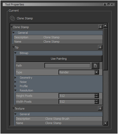 | 4. | 要自定义您用于所选工具的画笔,请在Tip和Geometry 部分。 |