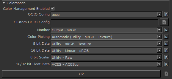 注意: 仅当颜色管理关闭时,此选项才可用。如果要关闭颜色管理,请导航至File > Settings > Colorspace并禁用Color Management Enabled。