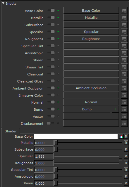 对于所有自定义着色器(那些未在默认着色器列表),位于Shaders调色板包含选定着色器的输入和滑块。可用的输入完全取决于您选择的着色器。输入字段使您可以指定哪个通道对应于哪个着色器组件。例如,如果您使用的是Current Channel着色器,您无需指定通道,因为您仅在模型上查看选定的通道。但是,如果您有Unreal选定的着色器,您正在查看为每个组件选择的任何通道,例如Base Color要么Roughness。