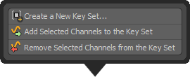 按键组提供了一种方便快捷的方法,可一次将按键添加到多个通道。您可以预先创建密钥集。例如,您可以为角色中的所有动画通道创建一个关键点集:其手臂,手等等。或者,您可以在工作时通过根据需要添加或删除通道来创建密钥集。您从弹出菜单中选择活动密钥集。要在集合中的所有通道上设置键,请为它们分配keying右边的按钮Key Set控件。