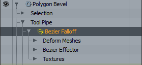 下图显示了添加到“多边形倒角”操作的工具管道中的“贝塞尔曲线衰减”。 Mesh Operations清单: