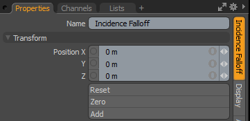 用于将选定的一组变换添加到“通道”列表,同时保留默认的0,0,0值。(对于参考,必须保留默认值。为了能够覆盖通道,它必须首先存在。) 注意: 变换项目是与存储其变换值的项目相关联的通道组。这些变换值控制项目的位置,旋转或比例。默认情况下,新项目没有与之关联的任何变换项目(尽管它们在Properties面板)。仅在需要时添加必要的变换以减少场景开销。如果您不使用Add功能(如此处所述),您可以使用各种转换工具之一(或通过编辑值)来转换目标项目。当您这样做时Modo自动将转换项添加到Channels视口列表。 |