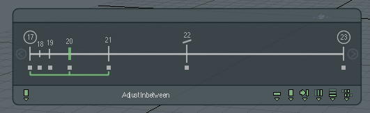中间编辑类似于编辑明细。图表标记下方的绿色括号表示中间创建的框架。这些是对的姿势Modo用于从中进行插值,因为它会根据喜好滑块的位置进行调整,或者在您拖动图表的中间位置时进行插值。这不同于中间工具总是在上一个和下一个键之间插入。