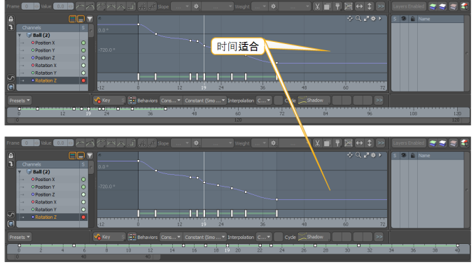 要随时间对任何项目设置动画,只需要在某个时间点(称为关键帧)设置特定的值,然后移动到其他时间点以设置新的关键帧即可。Modo平滑地插入中间值。