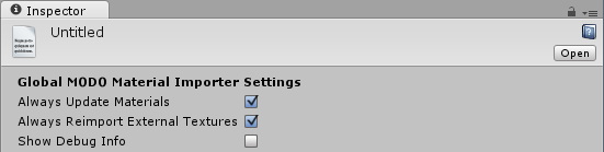 该脚本有两个全局选项。您可以通过打开.xml从中导出文件Modo在Unity的Inspector中。的Inspector标签出现在屏幕的右侧。这些选项影响所有.xml文件,而不仅仅是选定的文件。