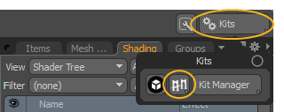 | 2. | 在用户界面的右上角,点击Kits,然后点击Modo桥接按钮。 |