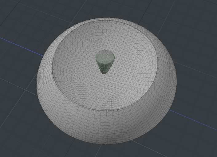现在在线框中绘制了网格:主网格(球体)为绿色,修剪(圆柱体)为品红色。它们在Items列出。一个新的Fusion Item也将自动创建。