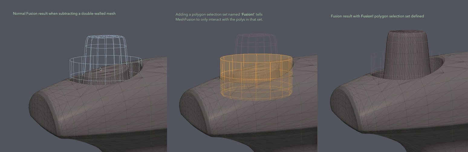的Fusion! 选择集指定了MeshFusion布尔运算中应包含MeshFusion源网格的哪些多边形。