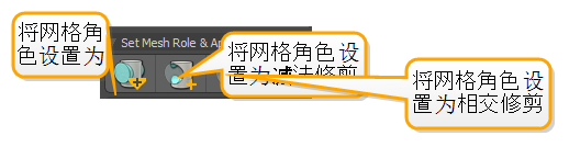 | 3. | 在里面Fusion建模工具箱的子标签,位于Set Mesh Role & Apply,单击“减法修剪”按钮。 |
