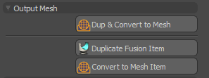 | 1. | 输出融合物品变成规则的网格。在右侧面板下Output Mesh,点击Dup and Convert to Mesh。使用默认设置,然后单击Create Mesh。 |