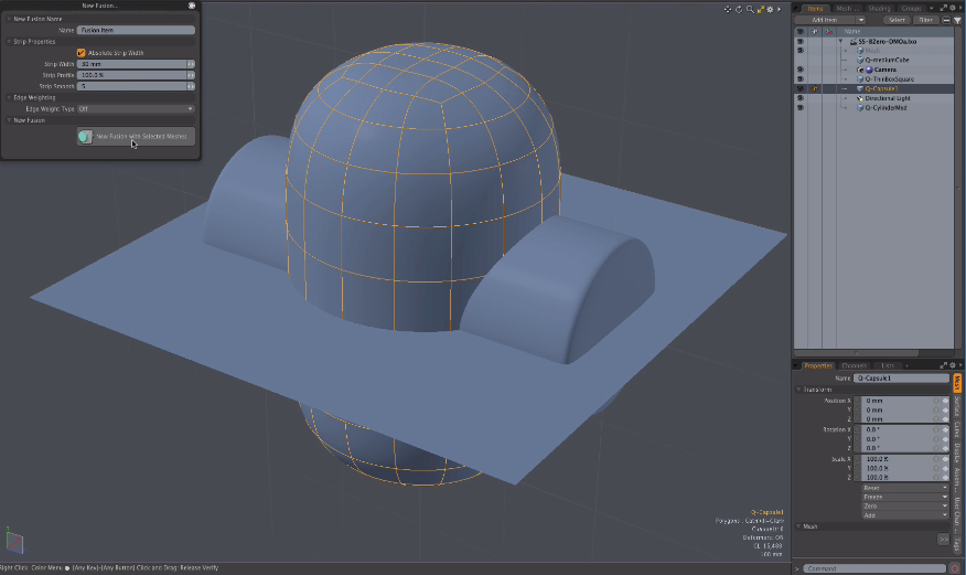 | 3. | 请点击New Fusion在左侧面板上,设置Strip Profile至100%,然后点击New Fusion with Selected Meshes。 |