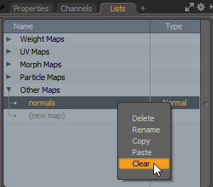 | 3. | 右键点击normals然后点击Clear。 |