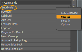 | 8. | 下Commands, 点击Subdivide下拉菜单,然后单击Faceted几次。 |