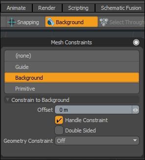 设置Mesh Constraints至Background限制前景层中对象的移动或创建,使其不穿过背景层中的任何几何图形。这是最常见的约束类型。