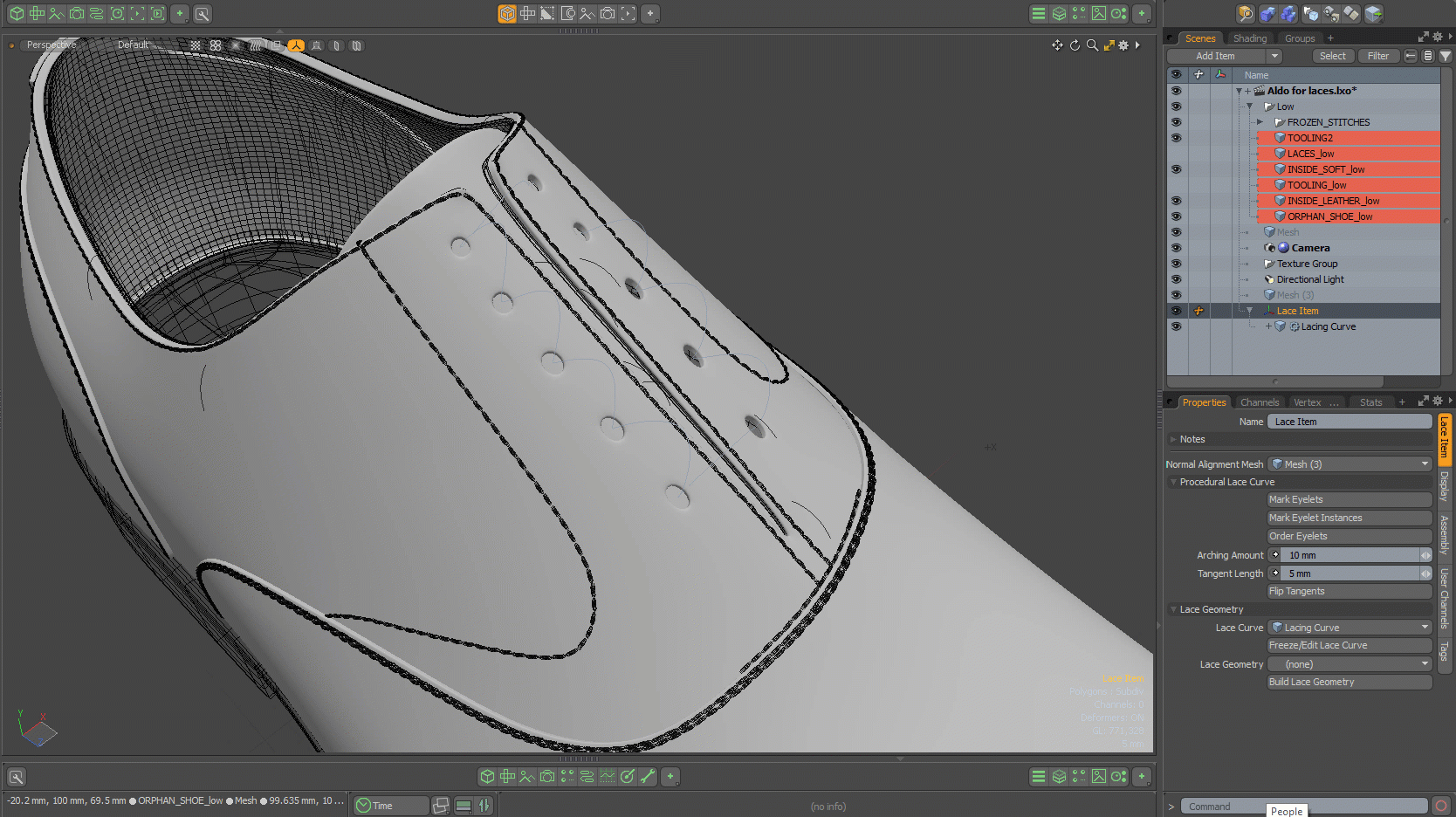 | 1. | 请点击Build Lace Geometry产生鞋带。 |
