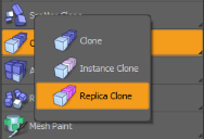 复制克隆工具基于指定的线性偏移量,使用复制器创建选定几何的克隆。要激活该工具,请右键单击Clone图标并选择Replica Clone从列表中。