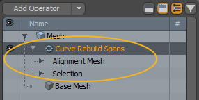 | 1. | 请点击Add...和Mesh Operations > Curves ,双击Curve Rebuild Spans。 |
