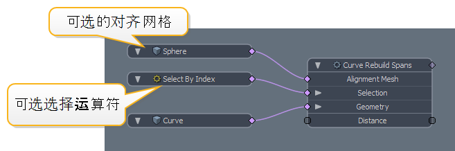 | 2. | 将曲线网格连接到“曲线重建跨度”节点的Geometry输入。 |