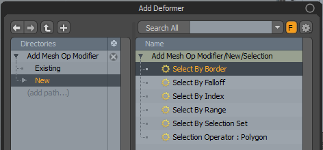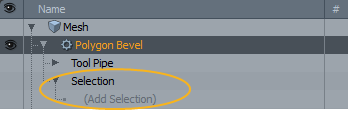 注意: 选择类型应与网格操作兼容。例如,如果由于不兼容而试图将边缘选择添加到“多边形倒角”操作中, Modo不会在中创建选择类型节点Mesh Operations清单。