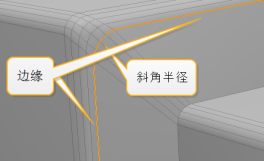 | 1. | 选择斜角边缘。选择内容应包括斜角的半径以及两侧的边缘。 |