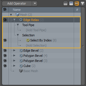 | 3. | 点击Add Operator按钮,然后在Mesh Operations > Edge,双击Edge Relax。 |