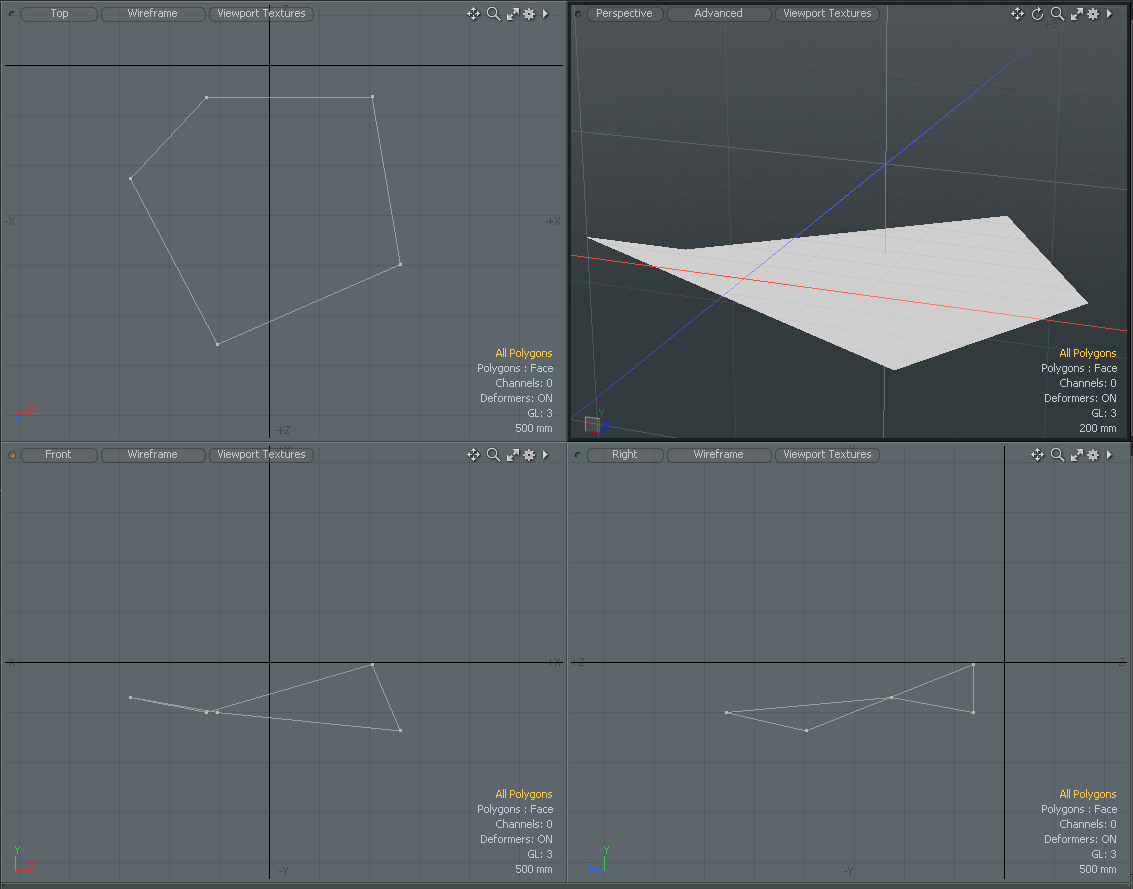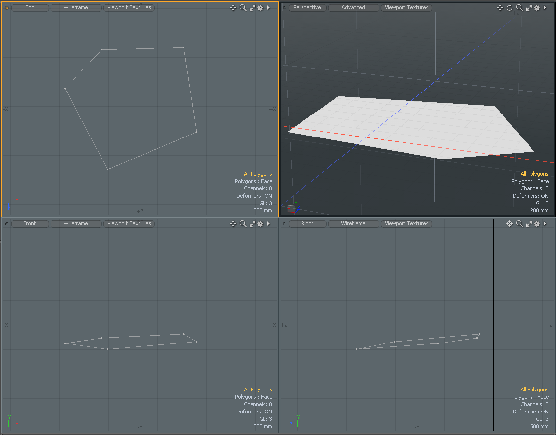 将显示所有视口视图,您会注意到该模型不是平面的。