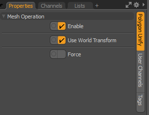 • 或者,在右侧面板上,打开Mesh Ops标签,点击Add Operator,然后双击Mesh Operations> Polygon > Polygon Unify。