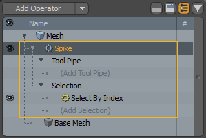 | 3. | 点击Add Operator按钮,然后在Mesh Operations > Polygon,双击Spike。 |