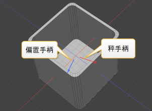 Modo在与原始多边形相同的位置创建一组新的多边形。您可以在3D视口中看到工具手柄。蓝色手柄调节偏移量,红色手柄调节比例。