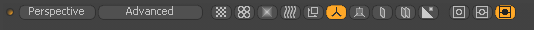 最左侧的胶囊按钮Thumb用于选择视口观看场景的方式(请参见工具平视显示器)。单击它以打开一个弹出菜单,允许您从“透视图”和各种等轴测视图的可用选项中进行选择,或者从“相机”或“灯光”的角度查看场景,或者雷·格莱选项为您提供场景的快速,完全渲染的视口内表示。的Viewport Textures图标可让您快速选择Environments, Matcaps和UV Textures显示在3D视口中,而不必将其添加到着色树。有关更多信息,请参见视口纹理。