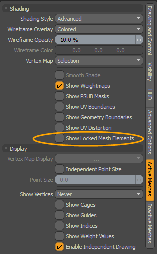 默认, Modo在视口中显示锁定的网格项目。您可以在视口属性中禁用它。