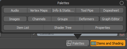 在布局的右侧,有一个Properties包含Item List, Shader Tree以及其他列表和信息视口。在它们下面,您可以找到项目属性。单击下部工具栏上的按钮之一,也可以隐藏“属性”面板。