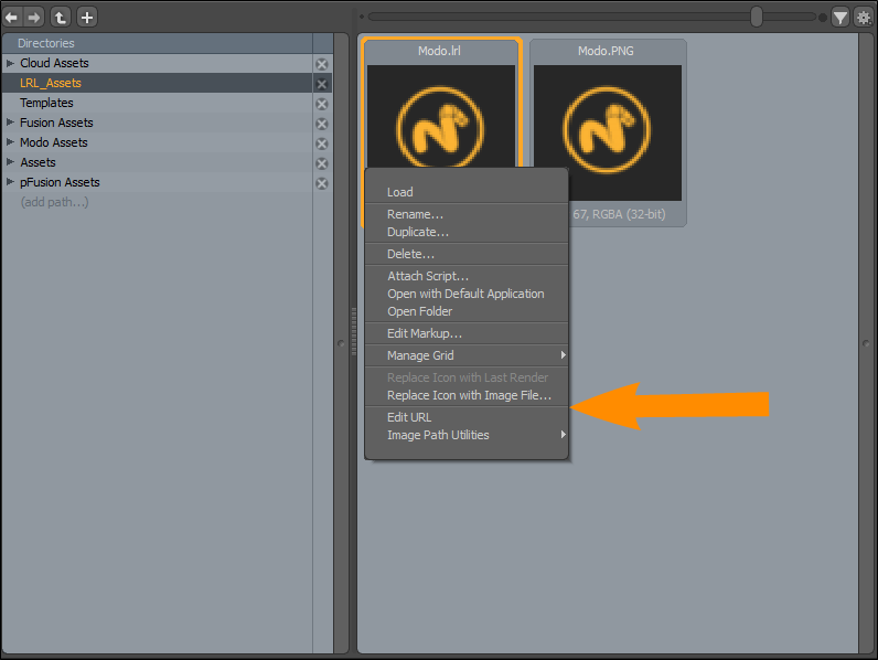 Modo自动使用创建文件*.lrl URL嵌入XML中的扩展名。该文件使用您指定为图标图像的图像。