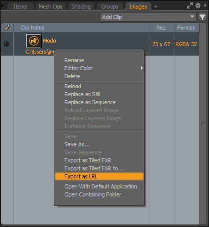 | 4. | 右键单击加载的图像,然后选择Export as LRL。 |