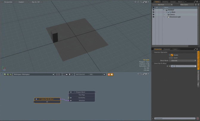 程序集别名预设,名为Select By ID自动连接到Polygon Bevel。