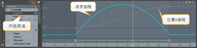 注意: 速度曲线是指通道所属项目的局部空间。如果该项目是另一个移动项目的父项,已应用修改器或该项目具有其他“位置”转换项目,则它不代表场景中该项目的世界速度。