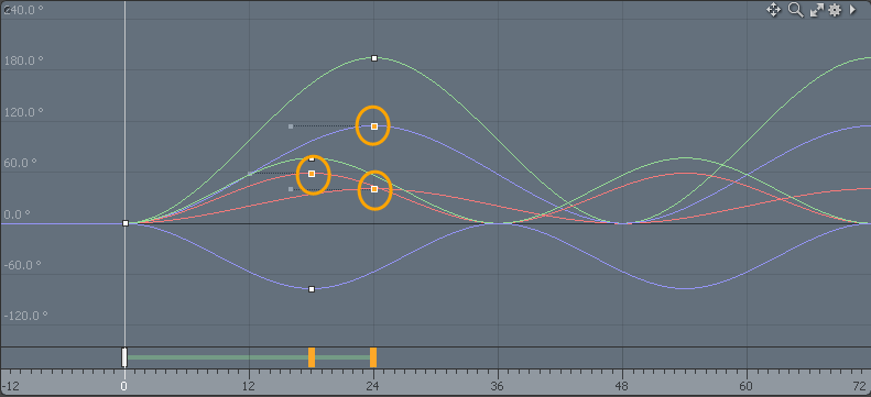 • 单击并拖动键可以选择键(如果尚未选择),并且可以快速编辑两者Input和Output值在同一时间。如果已经选择了几个键,然后在其中之一上单击拖动,则所有选择的键都将被修改。
